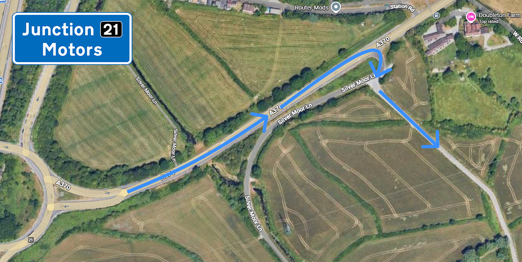 Take the first turning right onto Silvermoor Lane and straight away left through the gate. Call us on 01934 268 001 when you arrive at the cars.